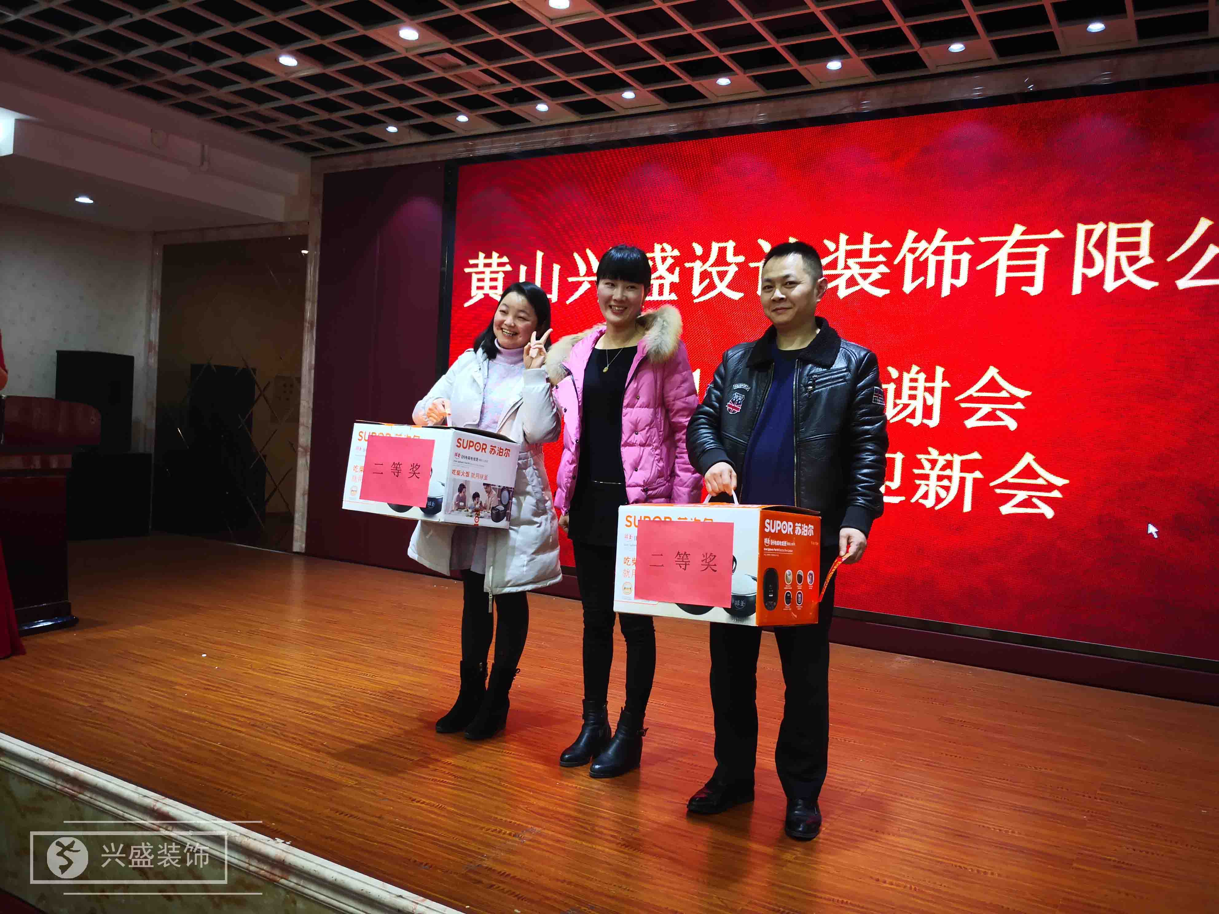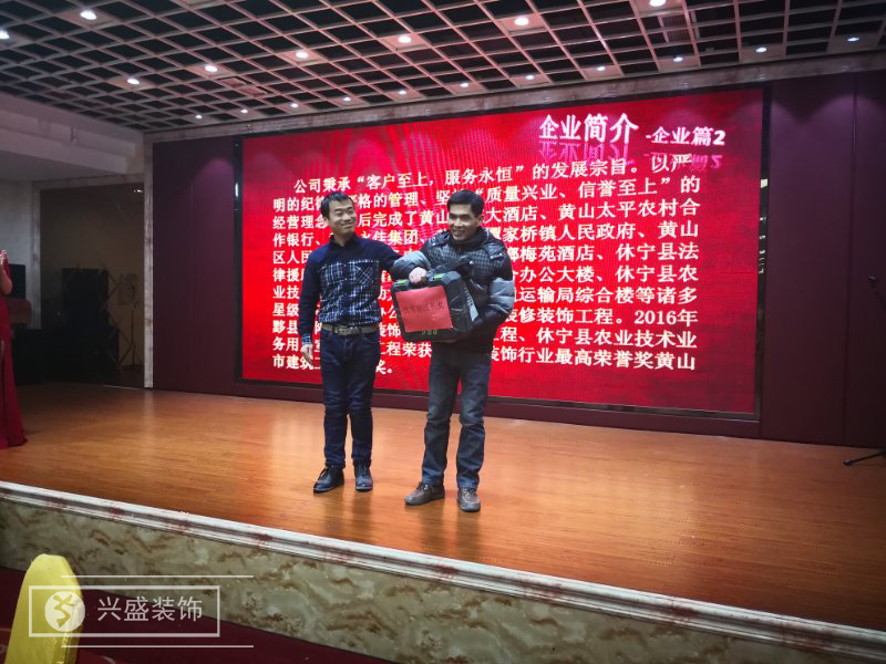 2018年2月3日,黃山興盛設(shè)計(jì)裝飾有限公司召開了2017年度答謝會(huì)暨2018年迎新會(huì),興盛全體員工、業(yè)主代表及供應(yīng)商代表齊聚一堂。